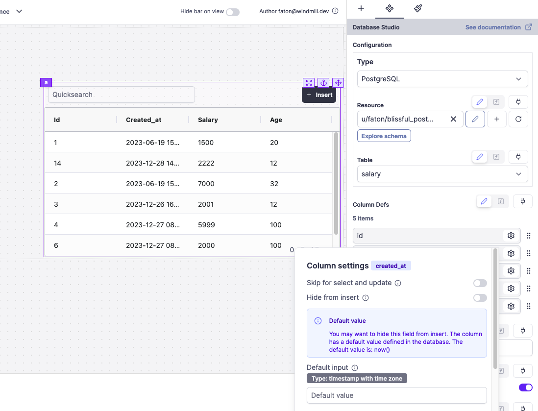 Introducing the Database studio, a web-based database management tool that leverages Ag Grid for table display and interaction. In apps, interaction with database content made easy; from a SQL resource, display, edit, add rows, delete rows ... and connect to other components.