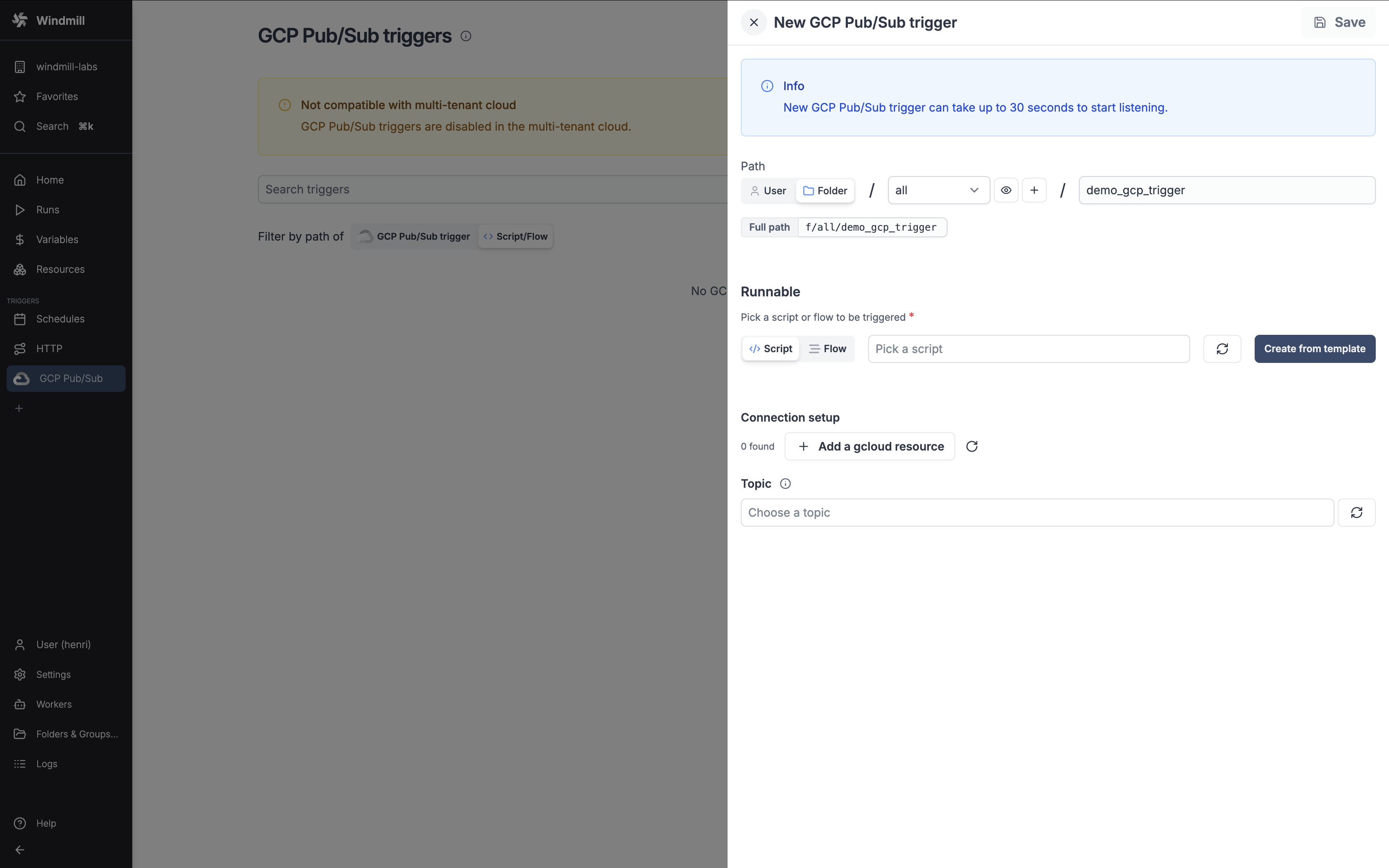 - Trigger scripts with @Windmill in public channels, private channels, DMs, and threads