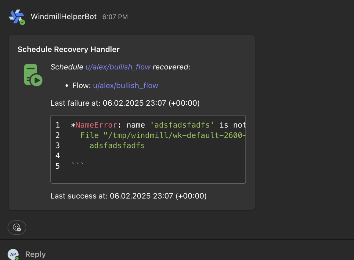 - Use the same handler script for both /windmill commands and @mentions